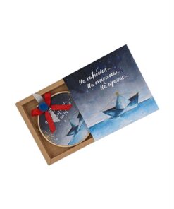 Γούρι κρεμαστό σε κασετίνα με κείμενο “να ταξιδεύεις να ονειρεύεσαι να αγαπάς”.