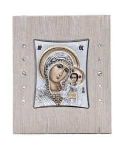 Θρησκευτική εικόνα με ξύλο και ασήμι , διακοσμημένη με αυθεντικές πέτρες Swarovski.