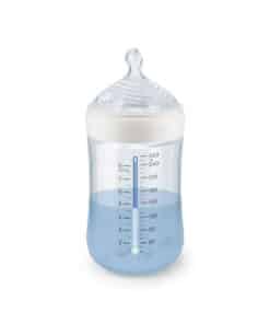 Mε Δείκτη Ελέγχου Θερμοκρασίας, χωρίς BPA (BPA free), 150ml: θηλή μεγέθους S με 3 μικροσκοπικές οπές (για αργή ταχύτητα ροής), 260ml: θηλή μεγέθους Μ με 6 μικροσκοπικές οπές (για μέτρια ταχύτητα ροής), συμβατό με όλα τα εξαρτήματα της σειράς NUK for Nature και NUK Nature Sense